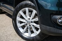 A close-up of a car tire with a silver rim, showing the tire's tread pattern and the tire's sidewall. The tire is attached to a black car, and the image is taken from a low angle, looking up at the tire. The background is out of focus, with a hint of a car's bodywork visible. | USED 2012 VOLKSWAGEN TIGUAN 2.0 TDi BlueMotion Tech SE 5dr | 483f4a2bb511f3a5cb38c2cdaf66cb214337f1d9c42e1b826dd346aa6969bbf3 | 001065775884 | 0 | 0 | 55 | 10 | 0 | 0 | |