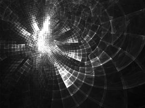 The second image is a close-up of a portion of the first image, focusing on the central area where the light source is most prominent. The image is highly stylized, with a monochromatic color scheme and a strong emphasis on light and shadow. The light source is depicted as a bright, star-like object with radiating lines, creating a sense of depth and dimensionality. The surrounding area is filled with abstract, geometric shapes that give the image a futuristic or digital aesthetic. The overall effect is one of a highly stylized, artistic representation of light and its interaction with the environment. | Monochrome Perspective Distorted Grid Fractal Design by R.T. Wohlstadter | b65b5693d39b1378959579caaf3bbbdd6a37a282ecbbc0c80fc1d232a4ae7efd | 001065775798 | 0 | 0 | 100 | 9 | 0 | 0 | |