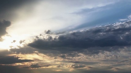 A dramatic sky with a mix of dark and light clouds, illuminated by the sun from the left side, creating a contrast of light and shadow. The clouds are layered, with some appearing fluffy and others more dense, suggesting a dynamic weather system. The overall tone of the image is moody and intense, with the sun's rays piercing through the clouds, casting a warm glow on the lower part of the sky. | timelapse clouds in summer in blue sky with sun | 1e11aa0d7dba9e3f9518889a8f4ffd04e79d4b24a7a9cb12ef65ef4f69c9743c | 001065775869 | 0 | 0 | 72 | 9 | 0 | 0 | |