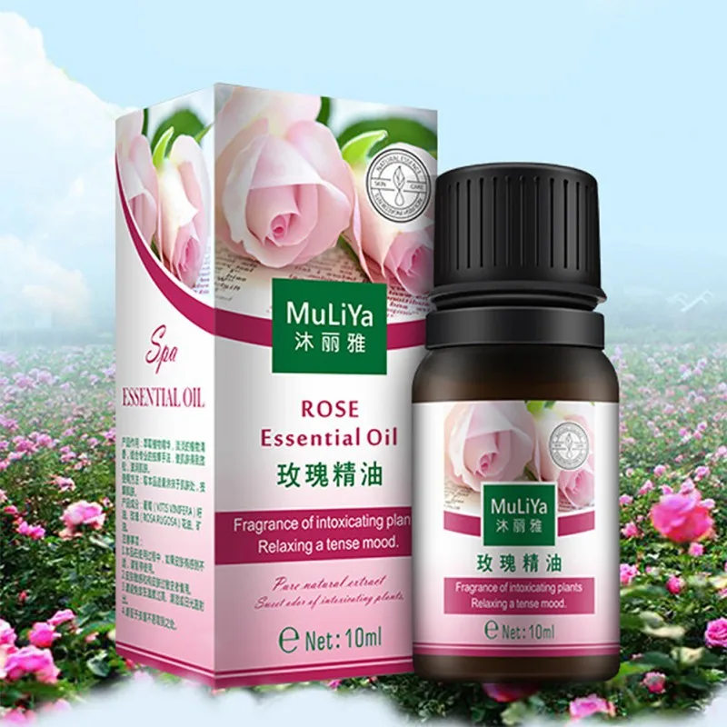 A bottle of Mulia Rose Essential Oil is displayed on a grassy field with pink flowers in the background. The bottle has a pink label with Chinese characters and a green cap. The label features a pink rose illustration and the words 'Rose Essential Oil' in English. The bottle is placed next to a box with a similar label, and both items are set against a soft-focus background of a field with pink flowers. | 2pcs Facial Body Care Cleanser Anti-Wrinkle Anti-Aging Grease Moisturizing Essential Oil 10ml | c8df351c4260de76a63888eb26de8307830b54569023fbb1e0556e0e99067ed3 | 001065776147 | 0 | 0 | 74 | 12 | 0 | 0 | |