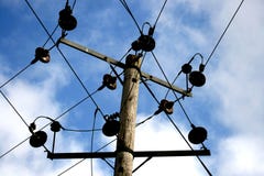 A close-up view of a wooden utility pole with multiple electrical wires and insulators attached to it. The pole is set against a backdrop of a blue sky with some clouds. The insulators are of various sizes and are evenly spaced along the length of the pole. | Power Lines Pole Royalty Free Stock Images | 13c4ce5db9ddf2980c2d23dfd343a2079077f2c049ec9a75ea82c23a01265543 | 001065746258 | 0 | 0 | 47 | 7 | 0 | 0 | |
