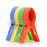 A set of colorful plastic clips is displayed on a white background. The clips are arranged in a vertical stack, with each clip having a different color: blue, yellow, green, red, and orange, from top to bottom. Each clip has a metal ring attached to it. | 400 Pcs lot 11.5 Cm Large Bright Colour Clothes Clip Plastic Beach Towel Pegs Clothespin Clips To Sunbed Multicolor | ee8e579cdf888ac67dee583c46464f6a4b0c636fb80817a4c45a37797e81487e | 001065746347 | 0 | 0 | 46 | 19 | 0 | 0 | |