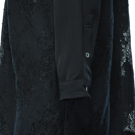 A black jacket with a zipper and a button is displayed against a white background. The jacket has a fitted silhouette and is adorned with intricate lace details on the sleeves and hem. The zipper is partially unzipped, revealing a glimpse of the lining inside. | Lace Layered Long Shirt | 193c228212976d3f3f80a34d2677341c6b89755f80bf5f7611c26097b1b137ac | 001065746968 | 0 | 0 | 45 | 4 | 0 | 0 | |