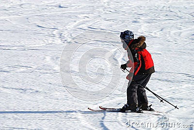 A person is skiing on a snowy slope with a clear sky above. The skier is wearing a red jacket, black pants, and a blue helmet with a fur-lined hood. They are holding ski poles and have skis on their feet. The snow has a pattern of tracks and swirls, and the overall scene is serene and calm. | Boy skiing | 6df374af9832915a0748f6b50800b1f8d5f4758ee034159d9c2cf0dc612c0d68 | 001065747020 | 0 | 0 | 58 | 2 | 0 | 0 | |