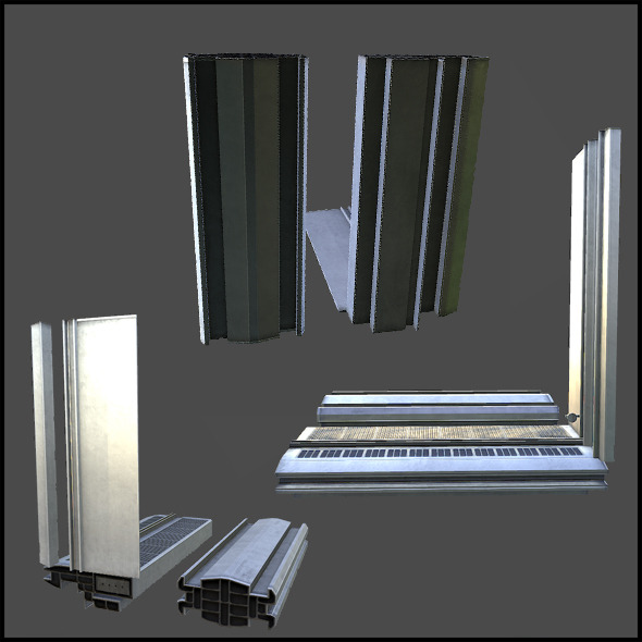 A collection of metallic objects, including a tall vertical piece, a horizontal piece, and a smaller vertical piece, are displayed against a grey background. The objects have a reflective surface and are arranged in a way that suggests they are part of a larger structure or design. | Facade Set 01 - 3DOcean Item for Sale | e1a3500bf7dca7f6d8554e8e11d34146269b580531737cd3f4041a3dc4b0eea0 | 001065747162 | 0 | 0 | 47 | 8 | 0 | 0 | |