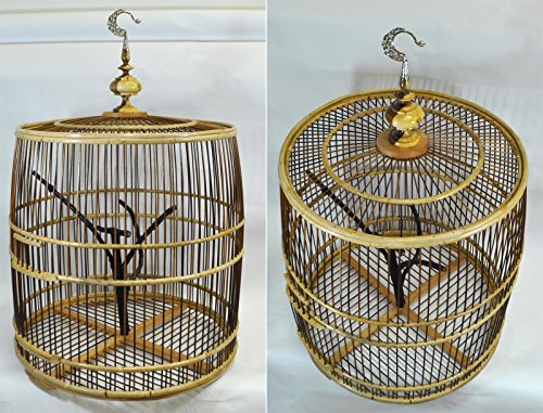 A pair of ornate birdcages with intricate designs and a golden finish. The cages are placed side by side against a white background. The cage on the left has a curved top with a golden finial and a small tree branch inside. The cage on the right has a similar design but with a different branch inside. Both cages have a mesh bottom and are mounted on wooden bases. | Bamboo Birdcage - 7 | ceb0c5cc41bc0e6640aaf17b3d44ac8571009ac08ad2e4a0a9e7448c85e869dc | 001065747255 | 0 | 0 | 69 | 4 | 0 | 0 | |