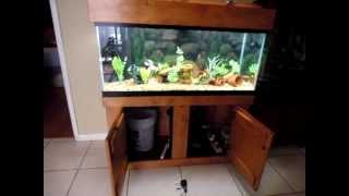 A well-maintained aquarium with a variety of fish and aquatic plants is housed in a wooden cabinet. The cabinet has a glass front, and the aquarium is filled with water, gravel, and decorative rocks. There are several fish of different colors and sizes swimming around, and the plants are lush and green. The cabinet also has a shelf with various items, including a water filter, a fish food container, and some cleaning tools. The floor is tiled, and the overall scene is clean and organized. | 75 gallon Fresh water Aquarium with Fluval fx5 canister filter connected on a built in overflow tank | Kholo.pk | 6cb64cbc8e18ddd20e0f6c2541a9948b21f39e67306c2f714de25e7cae6e53e8 | 001065747299 | 0 | 0 | 85 | 19 | 0 | 0 | |