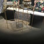 A modern glass coffee table with a geometric metal frame is placed in a room with floral patterned wallpaper and a black cushioned chair. | 2 Iron & Glass Stands Tables | 6c3e3d7d73ce92e593bb6f46eac8b384546ac24243c2340878c60398c339448d | 001065747275 | 0 | 0 | 24 | 6 | 0 | 0 | |