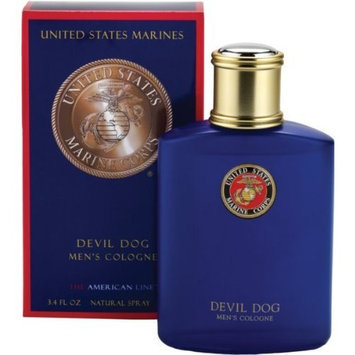 A bottle of Devil Dog Men's Cologne by United States Marines is displayed with its cap off, revealing the fragrance inside. The bottle is blue with a gold cap and a gold emblem featuring a Marine Corps insignia. The background is a plain, light color. | Parfumologie Us Marines Corps devil Dog Cologne Spray for Men, 3.4 Ounce | 7c36dacb7b5abd5cf0f4c09a2242dba383b77de8e8f8012fb83b9c8bd0bdde38 | 001065747356 | 0 | 0 | 45 | 12 | 0 | 0 | |