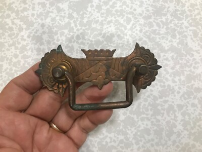 A hand holding a small, ornate, antique brass object with intricate designs and a crown motif. | Amazing Rare Victorian Copper \xe2\x80\x9cCraftsman\xe2\x80\x9d Eastlake Handles Antique Per Piece | 44e394e156a35e3f7039c4628e3f275efdfd2e98c77a4f54930721bc730d62e6 | 001065747377 | 0 | 0 | 16 | 10 | 0 | 0 | |