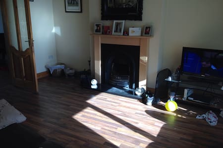 A cozy living room with a wooden floor, a fireplace, and a television on a stand. There are various items scattered around the room, including a teddy bear, a balloon, a pair of shoes, and some papers. The room has a warm ambiance with sunlight streaming through the window. | Semi Detached house in quiet estate - Kilmallock | d4c76c0428cba88a4ae52109c1b459f104d36983af9fce2ebf49de17d5b2bc79 | 001065747750 | 0 | 0 | 49 | 8 | 0 | 0 | |