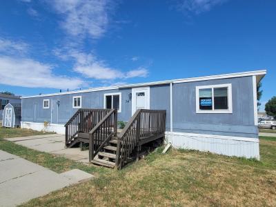 A blue mobile home with a white roof is parked on a grassy lot. The home has a single door with a window above it, and two windows on the left side. There are two wooden staircases leading up to the door, one on each side. The grass is green and there are a few weeds around the base of the home. The sky is clear with a few clouds, and there is a car parked in the background to the right. | Mobile Home at 34 Cacti Place Casper, WY 82604 | e6fc6de3e8a26bb04ec1e00501dfc933c1292c4ecb88f78fac0bf8a0f60e35d3 | 001065747783 | 0 | 0 | 82 | 9 | 0 | 0 | |