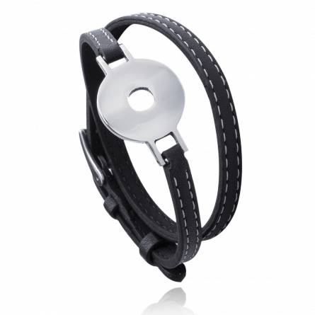 A close-up image of a black leather watch strap with a silver buckle. The buckle is circular with a central hole and two side holes, and it has a textured surface. The strap is attached to a watch face that is not visible in the frame. The background is a white surface with a subtle gradient, and there is a soft shadow cast by the strap. | Bracelet Acier Cuir Arrow | 1c2c4f87b93157cec59cd1b8b67740e98753fe3374b97a267bd6b09edda840b8 | 001065747819 | 0 | 0 | 66 | 4 | 0 | 0 | |