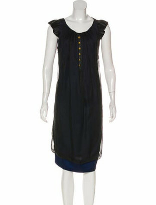 A mannequin is dressed in a black dress with a fitted bodice, short sleeves, and a flared skirt. The dress has a high neckline and is adorned with a row of gold buttons down the center front. The mannequin is positioned against a white background. | Valentino Silk Midi Dress w/ Tags Black | 3ba250dcd9ace701b1eca125178369210e479a23c7ce71189b284e52b930869b | 001065747927 | 0 | 0 | 45 | 7 | 0 | 0 | |