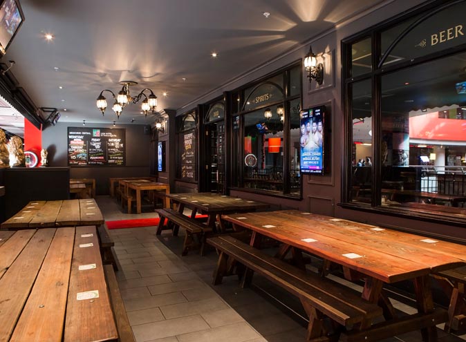 A spacious restaurant interior with a row of wooden tables and benches on the left side. The tables are covered with paper placemats, and there are additional benches along the wall. The floor is tiled, and the walls are adorned with framed pictures and a menu board. Large windows allow natural light to enter, and the ceiling has recessed lighting. The restaurant has a cozy and inviting atmosphere. | Melbourne Central Lion Hotel <br/> Best CBD Bars | 959ff0132cec4fa5b27c578db042459debb544e1c85935bbd3117bcd0b12ddd9 | 001065747867 | 0 | 0 | 68 | 8 | 0 | 0 | |