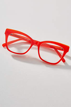 A pair of bright red plastic glasses with a reflective surface and a visible brand name on the temples, placed on a white background. | Anthropologie Heather Square Reading Glasses | 7889e4408ec56b56f2a89ef65ea375391109a0fc4cc3e8951a53ca10d81331be | 001065748567 | 0 | 0 | 24 | 5 | 0 | 0 | |