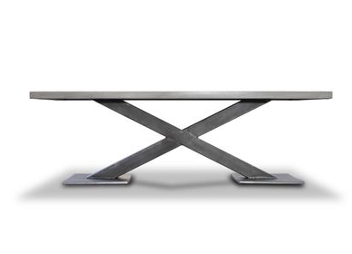 A sleek, modern steel table with a minimalist design, featuring a flat top and a simple, geometric base with four legs. | Tables - Table X-ray - ECOMATRIX | 5e6fbeded24240d9ae7707a26de95a6294d02e58a225fd4bece8911870b54a27 | 001065748915 | 0 | 0 | 21 | 6 | 0 | 0 | |
