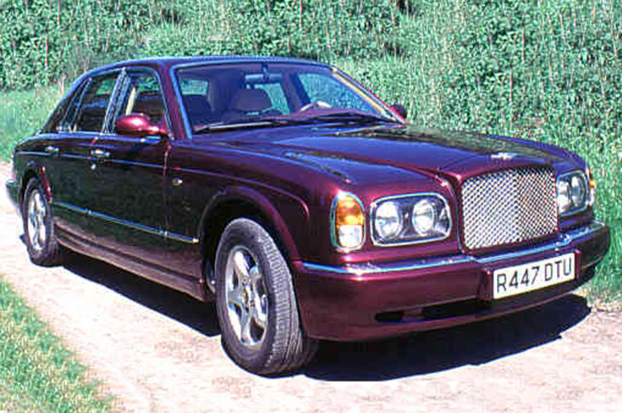 A maroon luxury car with a shiny grille and chrome detailing is parked on a dirt road surrounded by greenery. | Bentley Arnage (1998-10) | a082b36080f9cf785bca56d916403a48473a80ab69e96d09ecc6a017e8965326 | 001065748870 | 0 | 0 | 20 | 3 | 0 | 0 | |