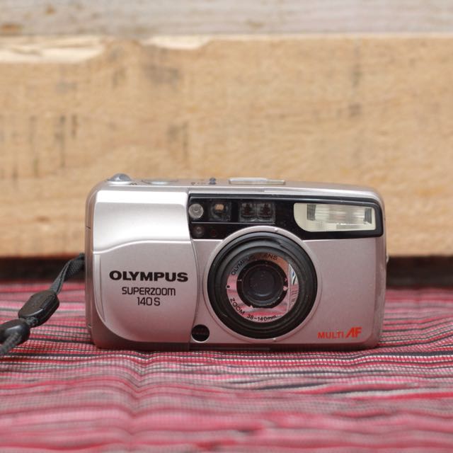 A silver digital camera with the brand name 'Olympus' and the model number 'M5' is lying on a red and white checkered cloth. The camera has a black lens and a small screen on the back. A black camera strap is attached to the camera. | Olympus Superzoom 140S | 4279a2961d441df7cdf45aac92f0d327a47a9f6cad92ed3cfe4c9974b9d0dc99 | 001065748875 | 0 | 0 | 45 | 3 | 0 | 0 | |