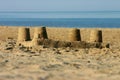 A sandcastle with a complex structure, featuring multiple towers and intricate details, is situated on a sandy beach. The ocean is visible in the background, with calm waves gently lapping at the shore. The sky is clear and blue, and the sandcastle is the focal point of the image, with its textures and shapes contrasting against the smoothness of the sand. | Sand castle on a beach. Stock Photos | 399175564b50fe44dcfd0062fe2677bb4a3d801ee490e9f580ea74900978941e | 001065748941 | 0 | 0 | 61 | 7 | 0 | 0 | |