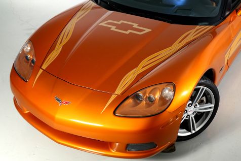 A close-up of the front of a bright orange sports car with a flame design on the hood and a 'CHEVY' logo on the side. The car is parked on a white surface, and the headlights are on. | 2007 Chevrolet Corvette Pace Car* AUTO* Only 86k mi* Rare Car* EZ Finance* | Plano, TX | Carrick's Autos in Plano, TX | 93fdb4660ae2e9b7aee64d7795b6b3b2047f78cacbfdb3e15ac5ae882a47cc73 | 001065749074 | 0 | 0 | 38 | 22 | 0 | 0 | |