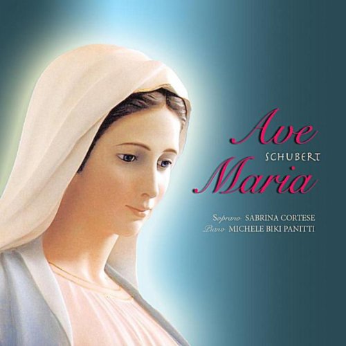 The second image is a close-up of a woman's face, presumably the Virgin Mary, with a serene expression. She has dark hair and is wearing a blue cloak with a golden trim. The background is a soft blue, and the image is framed with a pink border at the top and bottom. The title 'AVE MARIA' is written in large, bold letters at the top, and the composer's name 'SCHUBERT' is visible at the bottom. The image has a warm, glowing quality, with a focus on the woman's face and the title. | Schubert: Ave Maria, No. 6, Op... | d169426f0c628c0cd004e977776b22611105f3d0ef03ed86b13b50c6187cd8d3 | 001065749028 | 0 | 0 | 92 | 6 | 0 | 0 | |