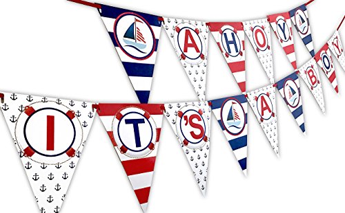 A string of colorful bunting flags with nautical themes such as anchors and ships, spelling out 'Ahoy It's A Boy' in a playful arrangement. | Ahoy It's A Boy Nautical Baby Shower Banner Pennant hot sale | 16908d3d2f9e3e98d9e561a1d2c907240fa9b3fe9a0fadf0daef3b8b3631fe91 | 001065749130 | 0 | 0 | 24 | 11 | 0 | 0 | |
