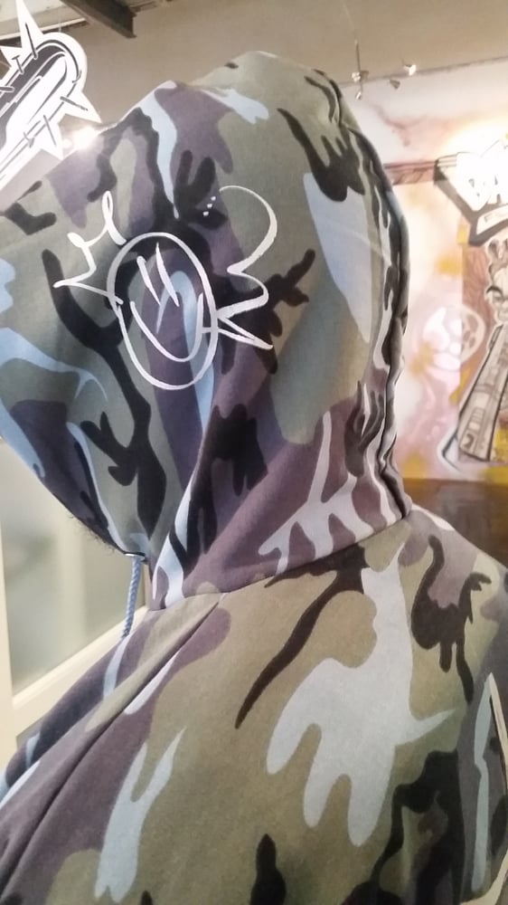 A close-up of a person's upper body wearing a camouflage hoodie with a graphic design on the chest. The person's face is obscured by the hoodie, and the background features a wall with graffiti art. | Image of ENEM Hoodie (Collector's Edition) | 080fbcf15bfe895d1dc75c94070e91a81526c459a7129e137a7f7c38f35224f3 | 001065749615 | 0 | 0 | 35 | 6 | 0 | 0 | |