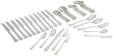 A set of stainless steel cutlery is neatly arranged on a white background. The set includes various utensils such as forks, knives, and spoons, all with a shiny, reflective surface. The cutlery is organized in a way that showcases each piece individually, with some pieces overlapping slightly to create a sense of depth and arrangement. | Lenox Portola 65-piece Flatware Set, 10.0 LB, Metallic | 124ae43ce60d90f8ad236a605609be7ef901075393a73280a7a0b77f2b062648 | 001065749585 | 0 | 0 | 55 | 8 | 0 | 0 | |