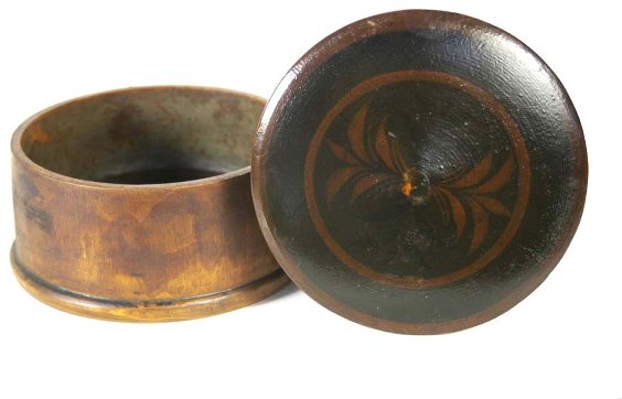 A rustic, handcrafted wooden bowl with a dark finish and a circular design on the lid, placed on a white background. | 4: 19th c. maple treen decorated sugar bowl, turned, ro | 5f983c5813090475b513336e3cb88fb302479dc64bd27df63faf274816c1a5b6 | 001065749662 | 0 | 0 | 21 | 10 | 0 | 0 | |