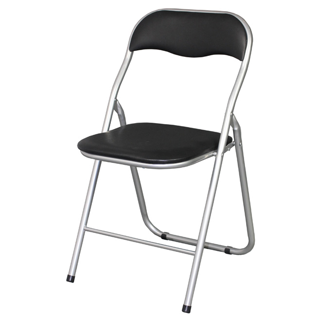 A sleek, modern metal folding chair with a black cushioned seat and backrest, featuring a shiny chrome finish and a minimalist design. | Folding Chair - Grey | d4ea1c68d807f83425900f407760b15f91460df7050f79ad05f165e2e35e3a3b | 001065750124 | 0 | 0 | 22 | 4 | 0 | 0 | |