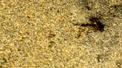 A close-up view of a sandy beach with a small, dark, and detailed insect, possibly a beetle, resting on the sand. The insect is centered in the image, and the surrounding sand has a natural texture with some small particles and ripples. | Macro of ant colony crawling very fast as they clear sand and soil from ant Stock Footage | 419646cdbca48813bf27372595a36f2873d5ff68b2bdff5485ee8df1ed4d7af7 | 001065749981 | 0 | 0 | 42 | 17 | 0 | 0 | |