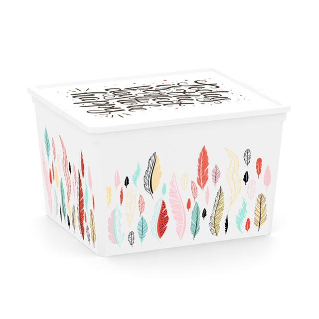 A white plastic storage box with a colorful leaf design on the lid. The design includes various shades of green, red, yellow, and black leaves, as well as some decorative elements like hearts and stars. The box is placed against a white background. | C Box Style Quotes with Lid - Cube - 0 | 64d1cd8661683629e7844ae22d232c53f3084c10c5e16d672fe7ecbca8611872 | 001065750111 | 0 | 0 | 43 | 10 | 0 | 0 | |