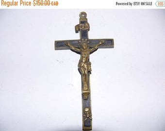 A detailed image of a crucifix with a figure of Jesus Christ on the cross. The crucifix is made of metal and has a dark patina, giving it an antique appearance. The figure of Jesus is depicted with a crown of thorns and a beard, and the cross is adorned with intricate designs and symbols. The background is a plain white surface, and there is a price tag with a regular price of $150.00 CAD and a sale price of $115.00 CAD. | ON SALE Vintage Crucifix | fa753d75243fbd0e5dc5a6bdffb399c09e92075c98b8460b5321b70e3d404339 | 001065749993 | 0 | 0 | 82 | 4 | 0 | 0 | |
