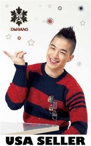 A person with a spiky hairstyle is wearing a red and blue striped sweater with a medal on the collar. They are making a peace sign with their hand and are surrounded by various decorative elements such as stars and snowflakes. The background is white, and there is text that reads 'USA SELLER' at the bottom. | Bigbang Tae Yang standing vert POSTER 23.5x34 Korean boy band Big Bang Taeyang | 0d50a6bb81ecf0b775aa81aaf561c93deabeab06c52dc2bcfb05bfee41bf189f | 001065750063 | 0 | 0 | 56 | 13 | 0 | 0 | |
