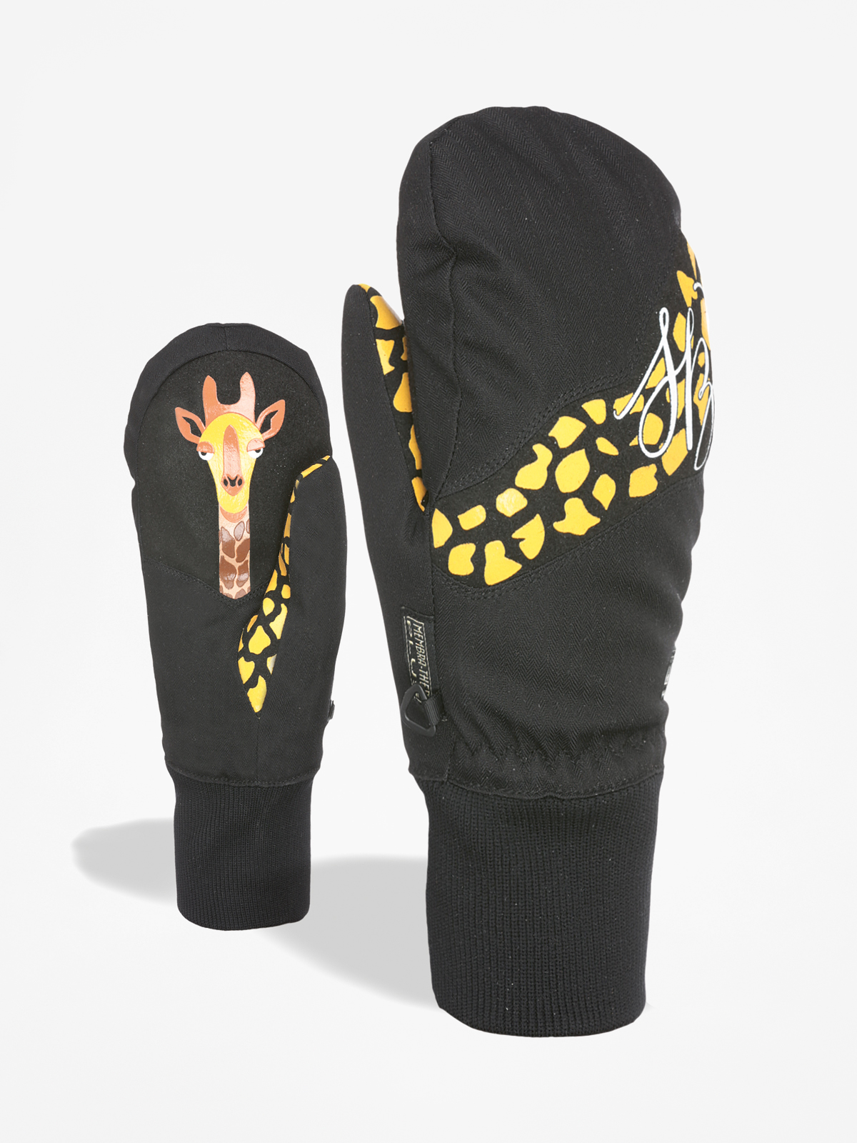 A pair of black gloves with a giraffe and a snake design on the left glove and a snake design on the right glove. The gloves have a yellow pattern resembling a snake's skin texture. The left glove has a small giraffe character on the cuff, and the right glove has a small snake character on the cuff. | Rukavice Level Bliss Coral Chic Mitt Wmn (black) | 441b816de746f67ef0d5702c03f7af047cb370dc61407825c57045ae119cce9a | 001065749788 | 0 | 0 | 58 | 8 | 0 | 0 | |
