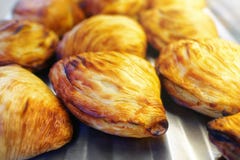 A collection of golden-brown, crispy pastries with a flaky texture, arranged on a metallic surface. The pastries have a rich, golden color and are slightly overlapping each other. | Sfogliatelle typical Neapolitan pastry. Royalty Free Stock Photos | d410df271c489bfa0f220646c8fbc07837a25ff2eb4f04e6c6b13a19966818ad | 001065750014 | 0 | 0 | 28 | 8 | 0 | 0 | |