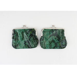 A pair of green snake skin patterned handbags with silver clasps are displayed against a white background. | Clipping purse "Seal" green / black lacquer | b60f30fe842233fb0667340cf83b76d0835ea0df0c319723553402146b540f02 | 001065750810 | 0 | 0 | 17 | 7 | 0 | 0 | |