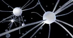 The second image shows a stylized representation of a cell structure, with a focus on the nucleus and the surrounding cytoplasm. The nucleus is depicted as a large, round, white structure with a prominent nucleolus. The cytoplasm is illustrated with a network of white lines and shapes, resembling the structure of the cell membrane and organelles. The background is a dark, starry space, which contrasts with the bright, white colors of the cell structure. | Neuron. Nerve cell. Neural Network Stock Illustration | 76cab35b99b300b09e5421e1ef0da903e61463575c91cb6f1cbf7e404113f6ec | 001065750716 | 0 | 0 | 74 | 7 | 0 | 0 | |