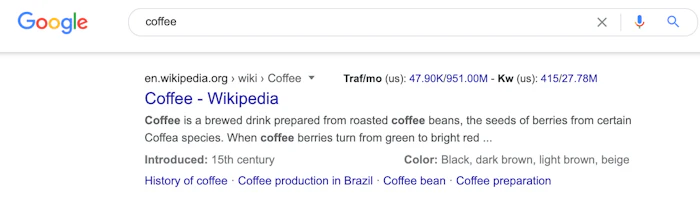 The first image shows a Google search results page with the search term 'coffee' highlighted in the search bar. The page displays various search results related to coffee, including a Wikipedia article about coffee, a definition of coffee, and other related topics. The search results are presented in a list format with brief descriptions and links to the corresponding articles. | coffee serp | 4d3b5113ae8e947bbf89b5c8807b6ebf2600b1a0aba73f319e0ed61bba34180e | 001065750797 | 0 | 0 | 60 | 2 | 0 | 0 | |