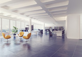 A spacious office space with a high ceiling and large windows allowing natural light to illuminate the room. The floor is covered with dark tiles, and there are several modern chairs and desks scattered throughout the space. A row of pendant lights hangs from the ceiling, providing additional lighting. The walls are white, and there are a few potted plants adding a touch of greenery to the room. | modern loft office interior. - 212456845 | c67a403b3f53f674cf155d10f136a216abc0447cd801f49e14ce22e933cfd8e4 | 001065750814 | 0 | 0 | 68 | 6 | 0 | 0 | |