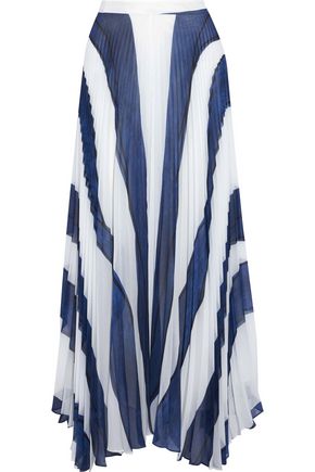 A white and blue striped skirt with a ruffled hem is displayed against a white background. | ALICE+OLIVIA Pleated printed chiffon maxi skirt | 444c5d640c30250083e21d97819e904a4c5c5792dc4b1d421f7bd86fd3b4b45d | 001065751118 | 0 | 0 | 16 | 6 | 0 | 0 | |