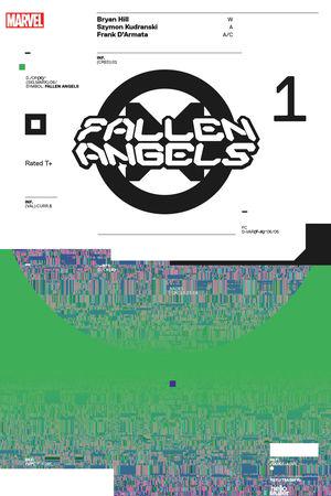 A close-up of a comic book cover featuring the character Fallen Angels. The cover is predominantly green with a black and white design, including a large circular emblem with a cross-like pattern in the center. The title 'FALLEN ANGELS' is prominently displayed in bold, stylized letters. The cover is overlaid with a distorted, pixelated effect that gives it a digital, glitchy appearance. | Fallen Angels (2019) #1 (Variant) | 0245866a9e08784bfca6b72b42f4737527405872b8868c356a4d665a9c5c917c | 001065751009 | 0 | 0 | 62 | 5 | 0 | 0 | |