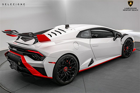A white sports car with red accents is parked in a showroom. The car has a sleek design with a distinctive rear wing and a prominent front grille. The showroom has a gray floor and a white wall in the background. The car's license plate reads 'LUXURY'. | 2022 Lamborghini Huracan STO | 872339dfa0b7aeb5390d7fbc7e7de3abcdc2ef4fb0f582d415e83fc614acaf99 | 001065750998 | 0 | 0 | 47 | 4 | 0 | 0 | |