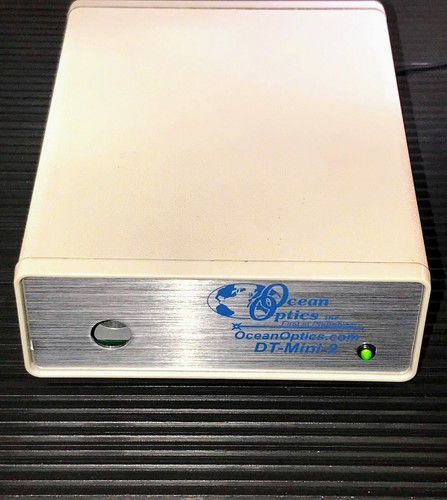 A small, white electronic device with a silver border is placed on a dark surface. The device has a green power button on the right side and a label that reads 'OCEAN OPTICS DFT MINI'. The label also features a stylized globe and the text 'DFT MINI'. | OCEAN OPTICS DEUTERIUM TUNGSTEN HALOGEN LIGHT SOURCE DT-MINI-2 FOR SPECTROMETER | 68d1026e59f56aade0598d6d196daf9334b2ecaa0aafc2d28b46f21fe7535414 | 001065751290 | 0 | 0 | 47 | 10 | 0 | 0 | |