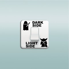 A white light switch with a black border and two black buttons, one on top of the other. The top button has a ghostly figure with a lightsaber, and the bottom button has a character with a lightsaber and a shield. The switch is set against a light blue background. | Movie Switch Sticker Cartoon Vinyl Removable Wall BLACK 6.2X6CM | e6c93f8d312ca74285f08821ef0183890c6904df051fe41337f525b05d9eb56b | 001065751569 | 0 | 0 | 50 | 9 | 0 | 0 | |