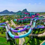 A vibrant water park with multiple colorful water slides, surrounded by lush greenery and a clear blue sky. The slides are of various shapes and sizes, with some featuring bright blue, purple, and red hues. The park is set against a backdrop of distant mountains, and the water appears calm and inviting. | Top 10 Water Parks in the World | eb86e4371cce2b60d834b63c2897dad06f90cec231f49ebe3313fd7d679f315d | 001065751498 | 0 | 0 | 52 | 7 | 0 | 0 | |