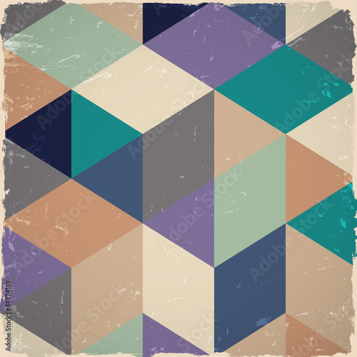 A geometric pattern with a vintage feel, featuring a combination of warm and cool colors. The pattern consists of large, irregularly shaped tiles with a textured appearance, giving the impression of a worn or aged surface. The colors include shades of blue, green, beige, and brown, with some tiles having a darker, more muted tone. The overall effect is a complex, layered design that suggests a rich history or a blend of different styles. | Retro geometric background in grunge style \xc2\xa9 arturaliev | 30b0c477f6fc230bc53299fce81925610bdfbbf60377c1d9ee32e69e4f6bc383 | 001065743483 | 0 | 0 | 74 | 8 | 0 | 0 | |