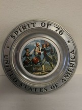 A silver plate with an engraved image of a group of people playing drums and a man with a drum, surrounded by the words 'SPIRIT OF '76' and 'UNITED STATES OF AMERICA'. The plate is placed on a white surface against a white wall. | Spirit Of '76 United States Of America Wilton/Columbia, Pa 1976 Pewter Plate - $39.99 | e963cc7dc5569b51900015f509ea9ffddb3b3b3712d50b6b784b7ebe4c5ab6bb | 001065751861 | 0 | 0 | 44 | 14 | 0 | 0 | |