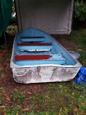 A weathered blue and red wooden rowboat with peeling paint and visible signs of wear is sitting on the grass. The boat is positioned under a tent-like structure, and there is a blue tarp partially covering the boat on the right side. The ground is covered with grass and a few fallen leaves. | 12ft aluminum boat for Sale in Stanwood, WA | 728e5c8fce83ae08c7a02a468fa849d8be00e0d743200982e22a5eb5271f6907 | 001065751951 | 0 | 0 | 53 | 8 | 0 | 0 | |